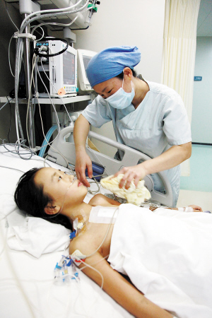 人民網(wǎng)·天津視窗11月19日電:鋪床、擦身、洗頭、洗腳、翻身、擦屎、端尿……這些又臟又累的繁瑣工作是病榻前少不了的一套活,因此也才有“久病床前無孝子”的常言,而有一個(gè)人整日代他人盡心盡力一做就是八年。她就是今年38歲的天津市泰達(dá)國(guó)際心血管病醫(yī)院重癥監(jiān)護(hù)室護(hù)理員梁志茹,昨天(18日)她接過了人力資源和社會(huì)保障部授予的“衛(wèi)生行業(yè)護(hù)理員全國(guó)技術(shù)能手”證書,這是我國(guó)首次為護(hù)理員行業(yè)設(shè)立“全國(guó)技術(shù)能手”獎(jiǎng)項(xiàng),此次全國(guó)共兩名護(hù)理員獲此殊榮。