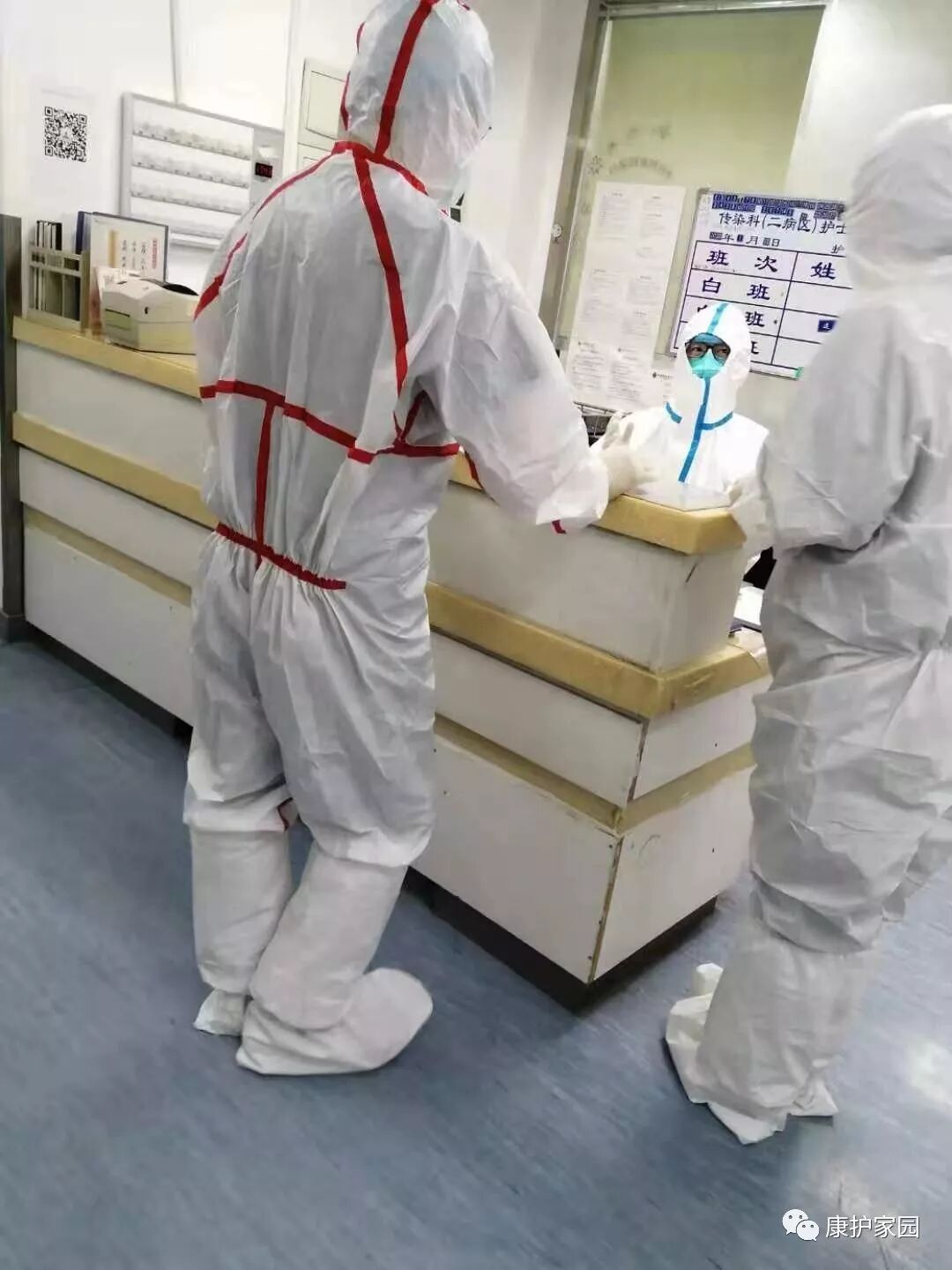 3名康護(hù)之家護(hù)理員于1月21日晚17:00正式接崗,照護(hù)疑似新型冠狀病毒肺炎患者。生活護(hù)理分兩組,一組:劉紅軍、李巖,二組:潘蓮萍、劉桂榮、武桂芬、李俊榮。在醫(yī)生和護(hù)士指導(dǎo)下協(xié)助患者進(jìn)食水,整理床單位等生活護(hù)理,同時(shí)主動(dòng)肩負(fù)病區(qū)環(huán)境消毒,每半個(gè)小時(shí)對(duì)病房進(jìn)行一次消毒?底o(hù)之家團(tuán)隊(duì)?wèi){借過硬專業(yè)技能和不畏生死勇于擔(dān)當(dāng)?shù)木,贏得了科室醫(yī)務(wù)人員掌聲。