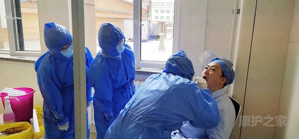 2020年4月21日,黑龍江省醫(yī)院患者服務(wù)中心的護(hù)士和泰心康護(hù)醫(yī)輔團(tuán)隊(duì)員工進(jìn)行檢測。在香坊院區(qū)免費(fèi)測試現(xiàn)場,曾經(jīng)有過多年護(hù)士工作經(jīng)驗(yàn)的泰心康護(hù)項(xiàng)目主管劉嬙、柴藝杰,積極參與到檢測工作中,協(xié)助檢測團(tuán)隊(duì)進(jìn)行咽拭子檢測和抽血檢測輔助工作。短短的3.5個(gè)小時(shí)、她們?yōu)?9名護(hù)士及188名泰心康護(hù)員工進(jìn)行檢測。專業(yè)的技能操作和良好的護(hù)理素養(yǎng)贏得的護(hù)士和科室的肯定和高度評價(jià),醫(yī)務(wù)人員親切的稱她們“全能女戰(zhàn)士”。