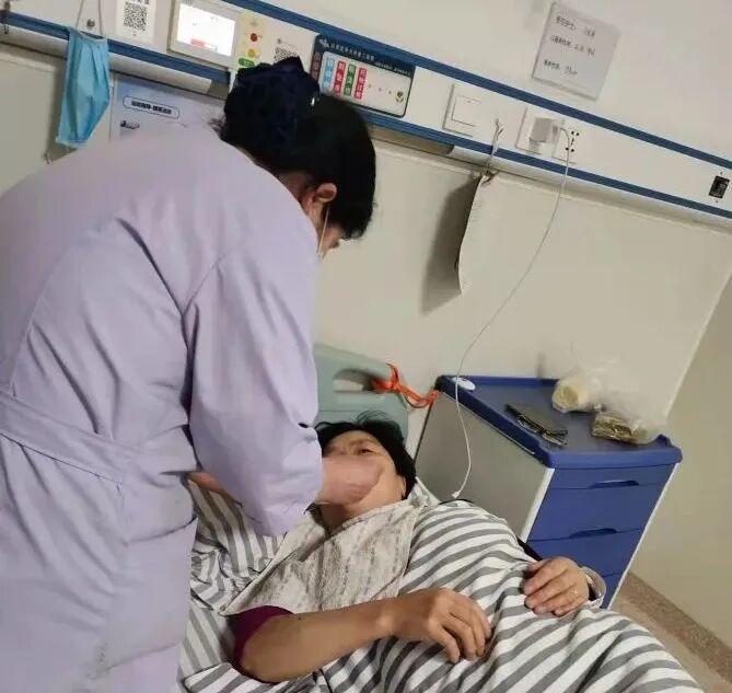 在她們的精心照料下,老人的臉上終于露出了笑容,也會(huì)時(shí)不時(shí)和護(hù)理人員嘮嘮家常。家屬看到護(hù)理人員一勺勺喂親人吃飯的照片及每日視頻中老人舒緩的心情和樂觀的精神狀態(tài),一顆緊繃的心終于釋放開來。