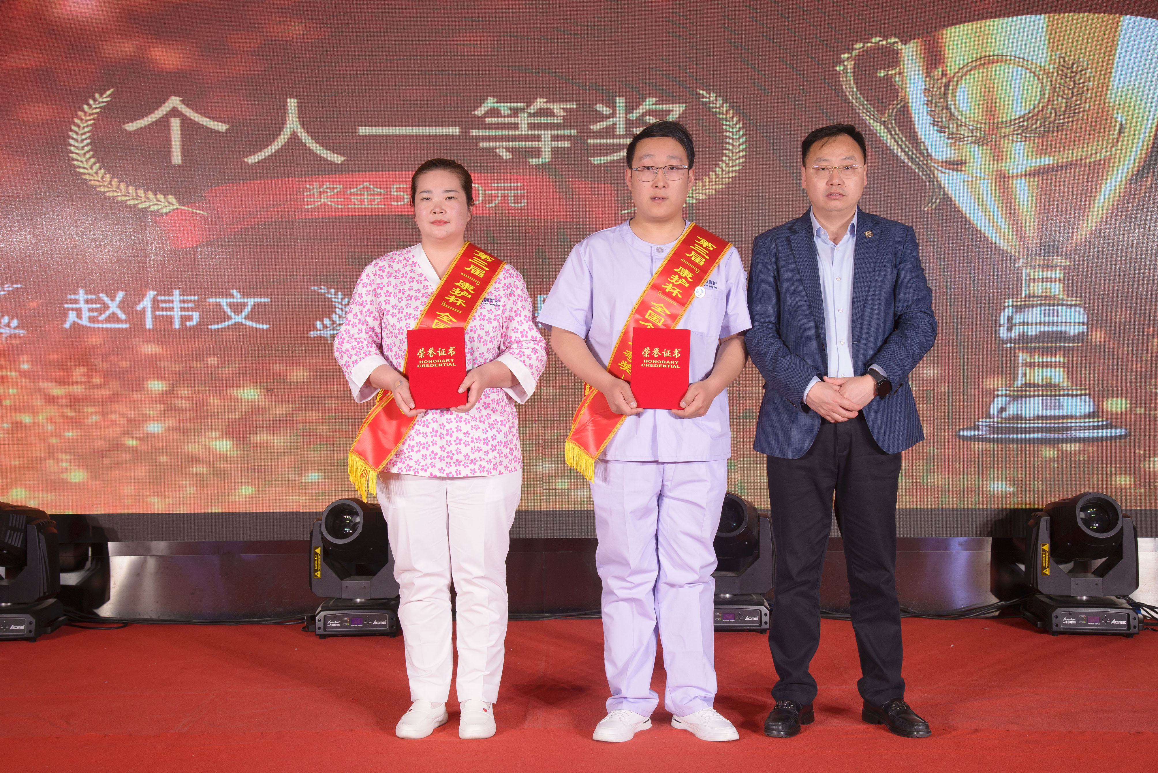 左一:個人母嬰組一等獎冉海鳳,左二:病患組一等獎趙偉文,右一:總經(jīng)理黃海
