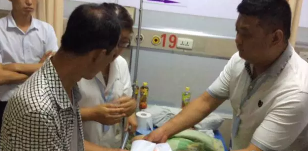 醫(yī)大一院項(xiàng)目李經(jīng)理將捐款交于家屬手中