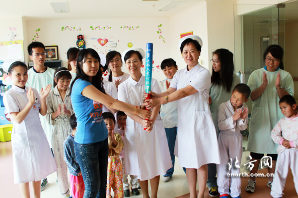 明亮的病房,整齊的病床,病床上一顆顆紅心抱枕格外顯眼,在六一國際兒童節(jié)到來前夕,身邊好人愛心接力棒又傳遞到了天津泰達(dá)國際心血管病醫(yī)院。在孩子們的歡笑聲和鼓掌聲中,天津泰達(dá)國際心血管病醫(yī)院護(hù)理主任劉亞平和外科護(hù)士長任曉玉接過了身邊好人愛心接力棒的第十四棒。