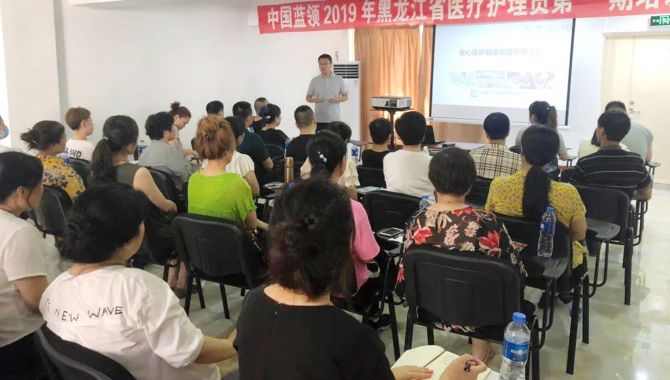 2019年7月11日,中國(guó)藍(lán)領(lǐng)2019年黑龍江省醫(yī)療護(hù)理員第一期培訓(xùn)班正式開(kāi)班,東北大區(qū)總監(jiān)陳海濤、黑龍江省總于明蒞臨培訓(xùn)現(xiàn)場(chǎng),為學(xué)員們進(jìn)行第一期課程培訓(xùn)。