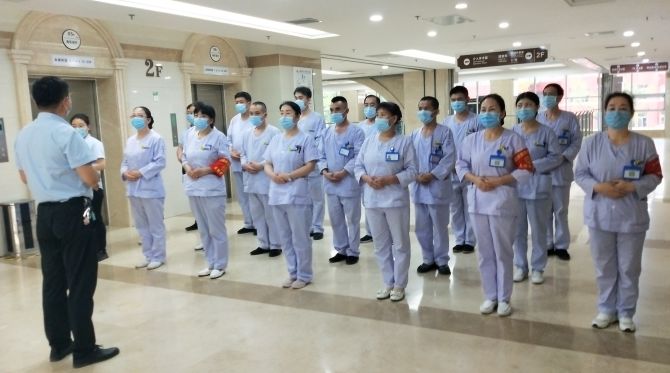 2020年6月6日下午,山西醫(yī)科大學(xué)第二醫(yī)院項(xiàng)目經(jīng)理閆曉剛組織在崗護(hù)理員召開項(xiàng)目部例行周例會(huì)。