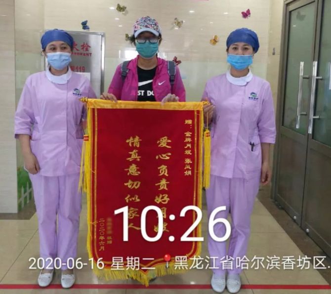 2020年6月16日,南寶媽一家人將一面題有“愛(ài)心負(fù)責(zé)好月嫂,情真意切似家人”的錦旗送給黑龍江省醫(yī)院香坊院區(qū)項(xiàng)目部,感謝月嫂張鳳娟一個(gè)月以來(lái)對(duì)寶媽和寶寶無(wú)微不至的貼心照顧。