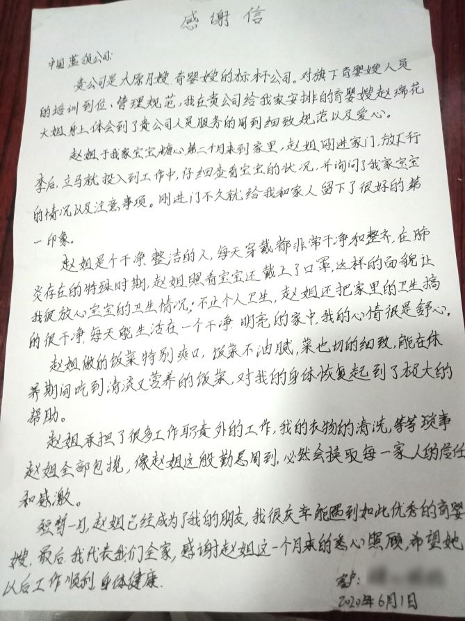 ▲6月初,趙姐收到寶媽書寫的表揚(yáng)信一封