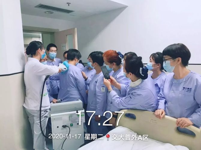 陜西省交大一附院普外科于今日進行為期半個月的規(guī)范培訓(xùn),科室護師利用下班時間培訓(xùn)護理員排痰機、氣壓泵,終末處理、胃腸減壓器、引流液如何記錄等專業(yè)操作。