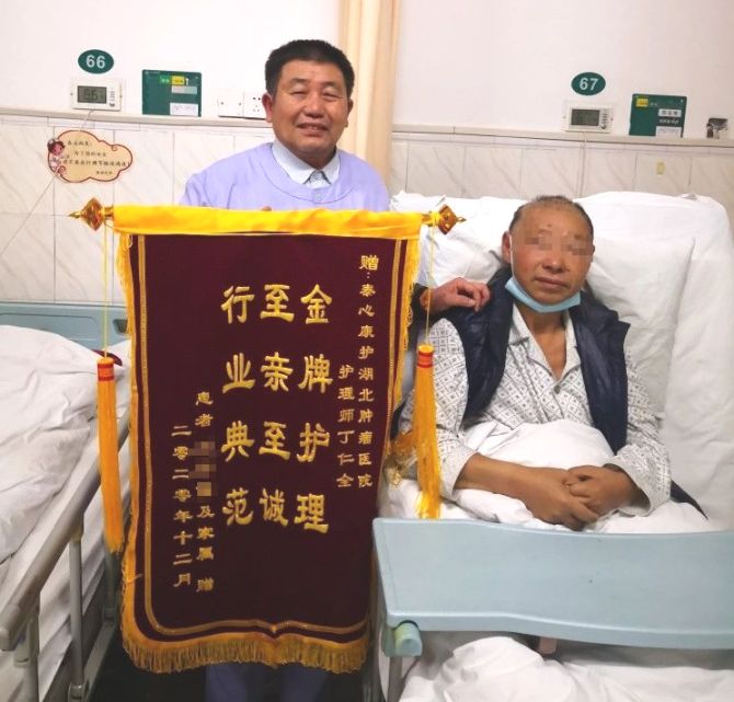 湖北省腫瘤醫(yī)院項目經(jīng)理姜歡稱贊丁仁全說道,各行各業(yè)的背后都有那么一群默默無聞的奉獻者,在這無職業(yè)光環(huán)不起眼的崗位上,給別人幫助,傳遞愛心,傳遞溫暖,十年如一日,丁仁全就是這樣的一位護理員。