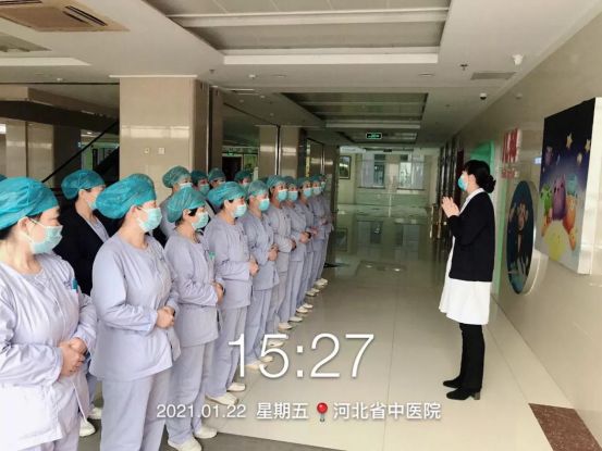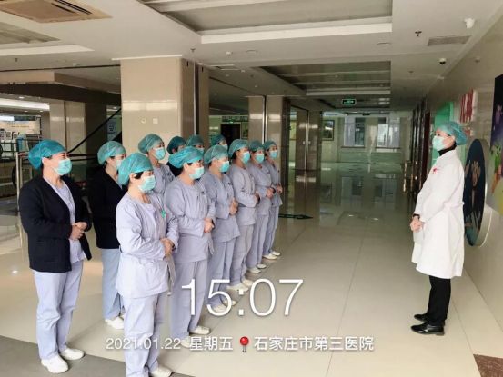 石家莊市第三醫(yī)院項(xiàng)目部護(hù)理員在河北省公司培訓(xùn)老師楊曉清的帶領(lǐng)下強(qiáng)化學(xué)習(xí)手衛(wèi)生等疫情防控知識(shí)。
