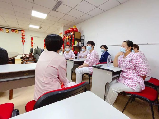 為了進一步加強遼寧藍領母嬰護理團隊的建設,提高專業(yè)知識水平,規(guī)范專業(yè)技能操作,2022年1月17日上午,遼寧藍領中國醫(yī)科大學附屬盛京醫(yī)院南湖項目邀請產(chǎn)一護士方媛老師為母嬰管理人員和月嫂培訓早產(chǎn)兒的護理知識和護理時的注意事項。