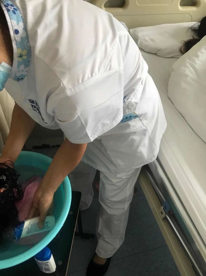 第二天,護(hù)理員給這個患者剪指甲、指導(dǎo)踝泵練習(xí)時(shí),她不再排斥,當(dāng)主管帶著護(hù)理員張玉玲大姐給患者洗頭發(fā)時(shí),她說住院二十多天沒有洗過頭發(fā),過后還給護(hù)理員大姐送水果表示感激。這證明,只要有心、只要堅(jiān)持就沒有做不到的事。