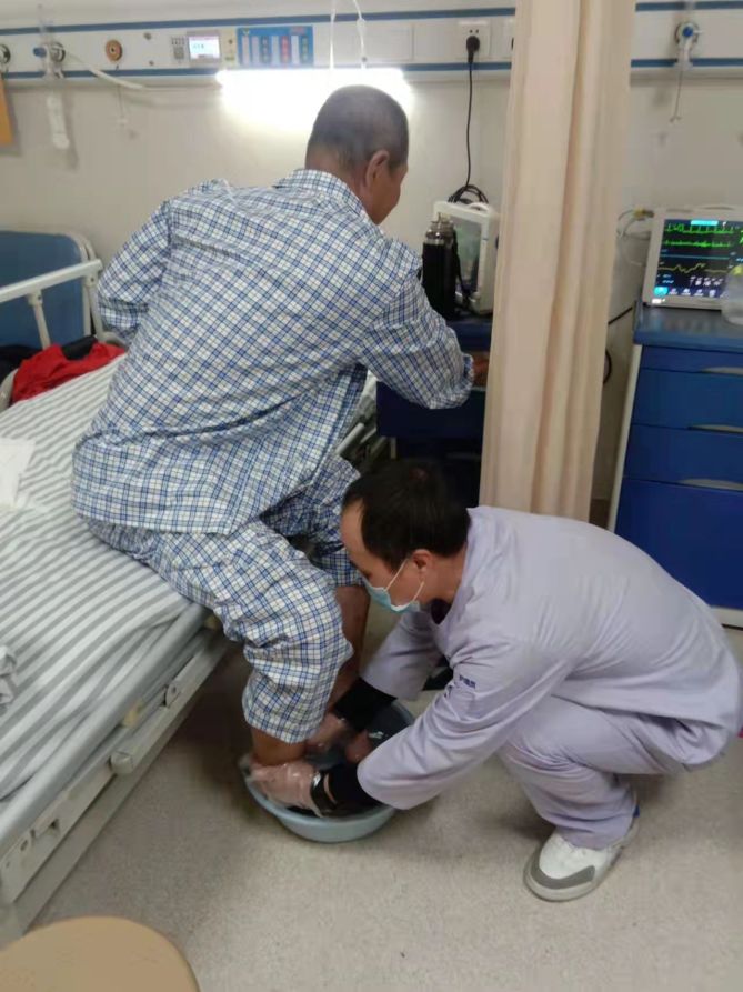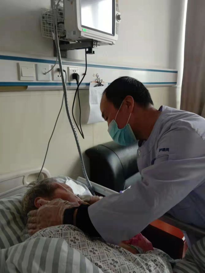 張奶奶的老伴是3月10日因急性心梗入院的,住院10多天,都是由小組護理員馮志剛負責照護老人的清潔、協(xié)助進食,翻身等。馮大哥干活麻利,做事細心,像端屎倒尿這些在我們常人看來非常辛苦,非常難做到的事,他卻每天都在不厭其煩的做著。
