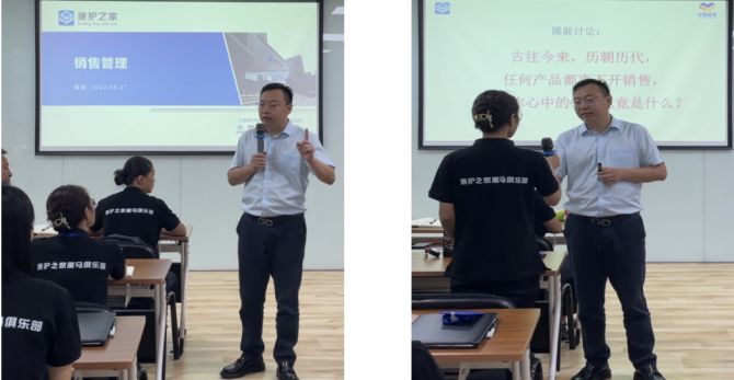 8月21日上午,由康護(hù)之家常務(wù)副總經(jīng)理黃海對(duì)銷售管理課程進(jìn)行培訓(xùn)。黃老師以“你心中的銷售是什么”問題開篇,深入講解了銷售成功的基礎(chǔ)和關(guān)鍵,通過黃老師的講解,場下的每一位同學(xué)都建立了相應(yīng)的銷售思維。