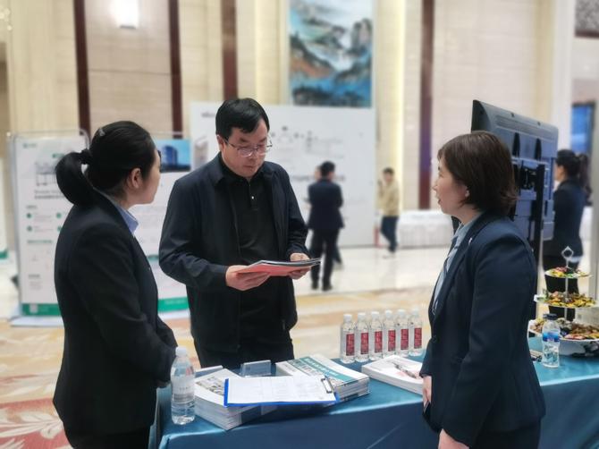 泰心康護(hù)事業(yè)部常務(wù)副總經(jīng)理劉明宇(右一)為來訪領(lǐng)導(dǎo)介紹公司業(yè)務(wù)
