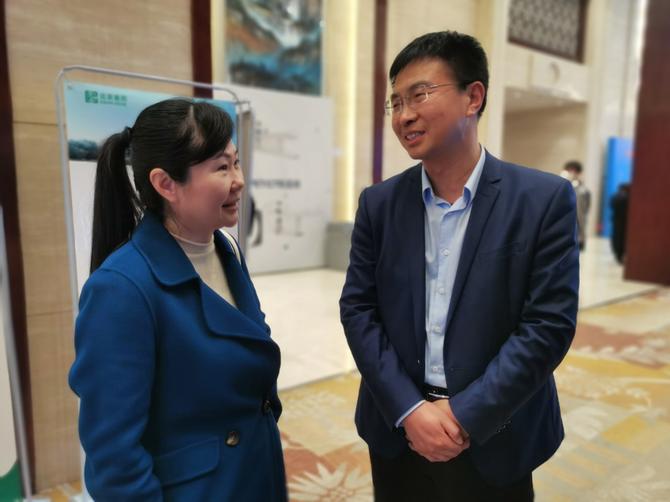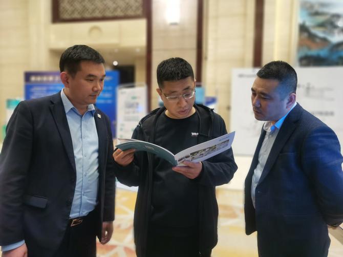 山西泰心康護(hù)省總閆曉剛(左一)為來訪領(lǐng)導(dǎo)介紹公司業(yè)務(wù)