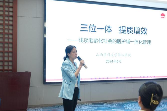 山西醫(yī)科大學(xué)第二醫(yī)院護(hù)士長程宏女士與河北省中醫(yī)院護(hù)理部副主任薛麗女士分別就“老齡化社會(huì)的醫(yī)護(hù)輔一體化管理”和“心理健康與情緒照護(hù)技巧”分享了寶貴的臨床經(jīng)驗(yàn)。