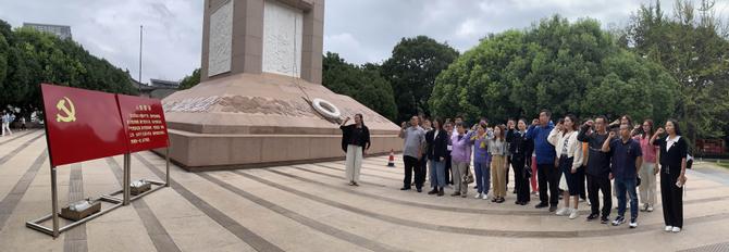 在莊重肅穆的氛圍之下,紀念碑前全體黨員肅立,面對鮮艷的黨旗,鄭重地重溫入黨誓詞。他們齊刷刷地舉起右手,以洪亮而堅定的聲音宣誓:“我志愿加入中國共產黨……隨時準備為黨和人民犧牲一切,永不叛黨。”這錚錚誓言,深刻彰顯了對黨的無限忠誠與對革命事業(yè)的堅定信念。隨后,全體人員心懷崇敬,向革命先烈敬獻鮮花,每一朵鮮花都承載著對英烈們的深切緬懷與無限敬仰。